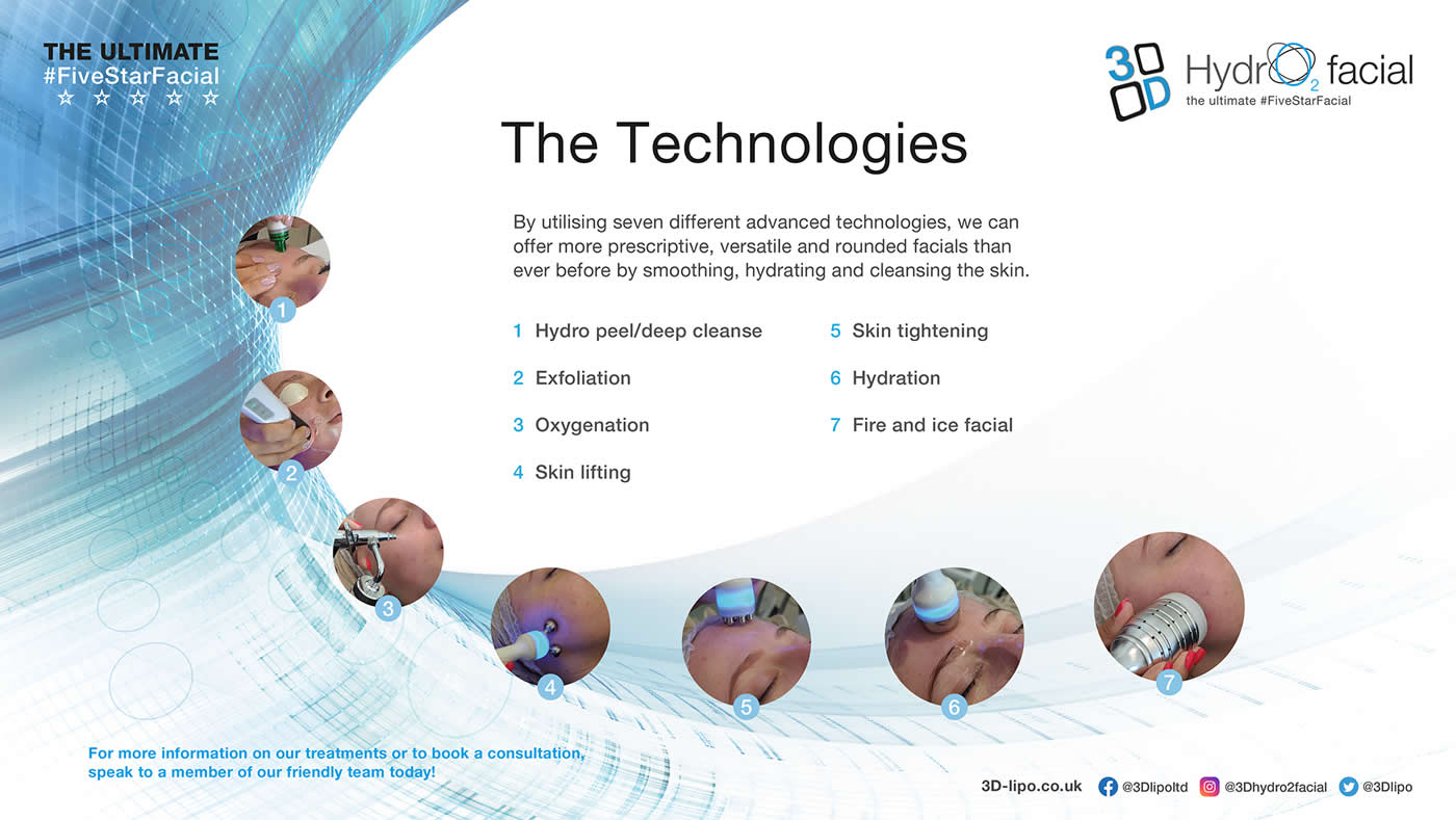 - Hydration - we use advanced ultrasound technology to enhance product infusion. This treatment can be used alongside the 3D-Professional Solutions Time Defence skincare range, for anti-ageing and hydration around areas where fine lines and wrinkles are likely to appear.